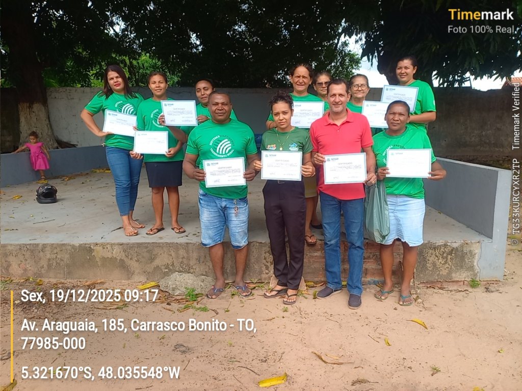 Ao final da capacitação, foi realizada a entrega dos certificados aos participantes, reconhecendo oficialmente o empenho, a dedicação e a conclusão do curso. Esse momento simbolizou não apenas a valorização do aprendizado adquirido, mas também o incentivo à continuidade das práticas sustentáveis e à aplicação dos conhecimentos no desenvolvimento local.